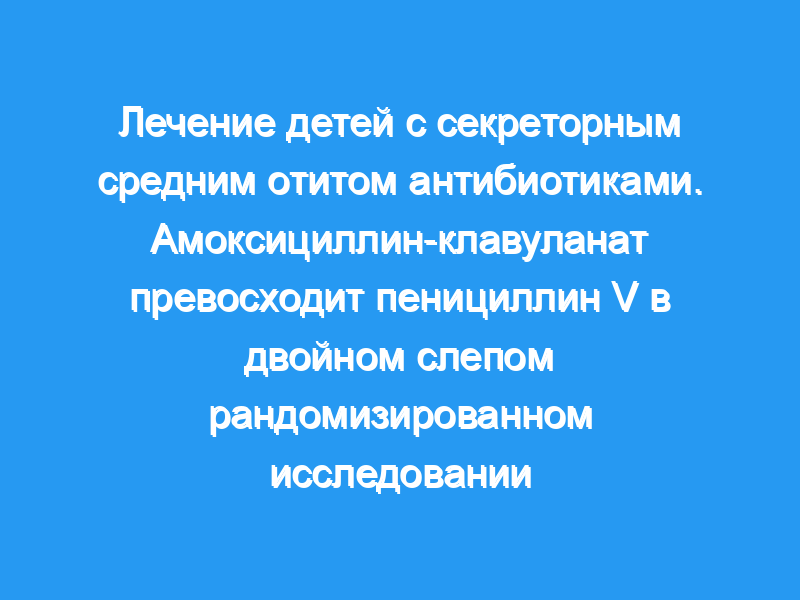 Сравнить эффект 2 различных противомикробных препаратов при лечении секреторного среднего отита (СОМ). Дизайн: Проспективное двойное слепое рандомизированное исследование. Пациенты: Из группы из 1450 детей (в возрасте 1-10 лет) с СОМ, определяемой тимпанометрией как имеющие тимпанограммы типа В или С2, в исследование были включены 429 детей с СОМ продолжительностью не менее 3 месяцев. После исключения 69 пациентов оставшиеся 360 были равномерно распределены между 4 группами лечения: пенициллин V (Примциллин) в течение 14 и 28 дней и амоксициллин и клавуланат калия в комбинации (Спектрамокс) в течение 14 и 28 дней. Критерием улучшения было изменение тимпанометрических показателей на тип C1 или тип A.