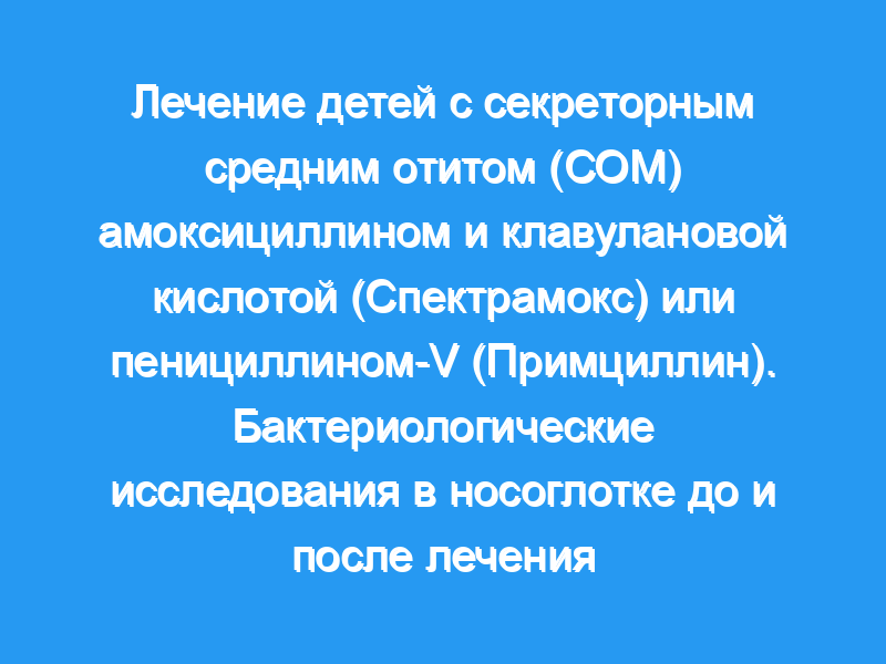 В общей сложности 386 детей в возрасте от 1 до 10 лет с секреторным средним отитом в течение не менее 3 месяцев были случайным образом распределены на 2 или 4 недели лечения пенициллином-V (Примциллин) или амоксициллином + клавулановой кислотой (Спектрамокс). Спектрамокс превосходил примциллин (p <, 0,01) в уничтожении Haemophilus influenzae и Branhamella catarrhalis из носоглотки.