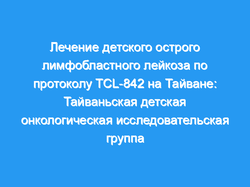 С марта 1984 по май 1988 года 212 детей с острым лимфобластным лейкозом были зарегистрированы по протоколу TCL-842. В целом 68 пациентов были отнесены к группе стандартного риска (SR), 56 — к группе промежуточного риска (IR) и 88 — к группе высокого риска (HR).