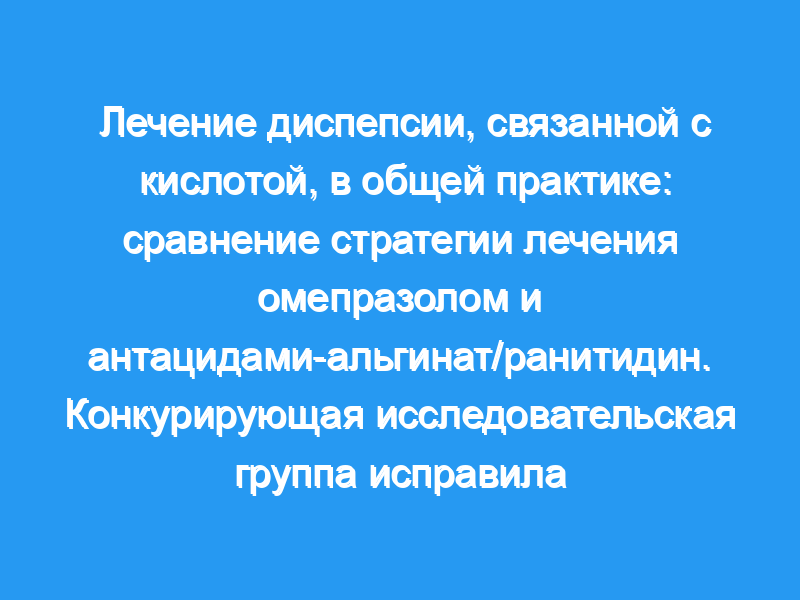 Стратегия клинического лечения омепразолом превосходила стратегию лечения антацидами-альгинатами/ранитидином в обеспечении облегчения симптомов диспепсии, связанных с кислотой, через 16 недель. Кроме того, стратегия лечения омепразолом включала меньшее количество консультаций с врачом общей практики и, таким образом, сводила к минимуму использование других ресурсов здравоохранения.