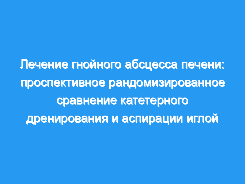 В течение 5-летнего периода 64 последовательных пациента с гнойным абсцессом печени получали внутривенное введение антибиотиков (ампициллин, цефуроксим и метронидазол) и рандомизированы на две группы чрескожного лечения: непрерывное катетерное дренирование (с помощью катетера с несколькими боковыми отверстиями 8F) и прерывистая аспирация иглой (одноразовая троакарная игла 18G). Не было статистически значимой разницы между двумя группами в отношении демографии пациентов, сопутствующего основного заболевания, размера абсцесса, количества абсцессов, количества локализаций абсцесса, клинических симптомов, таких как лихорадка, боль в животе и показатели функции печени до лечения.