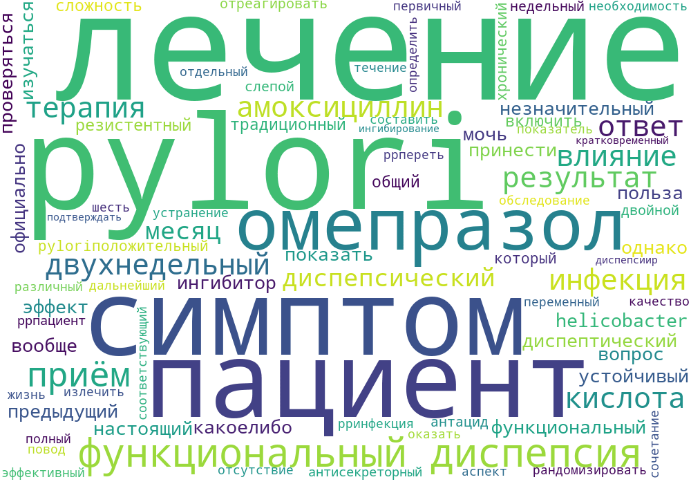 Пациенты были рандомизированы для двухнедельного лечения омепразолом в дозе 40 мг два раза в день в сочетании с амоксициллином по 1 г два раза в день или только омепразолом в дозе 20 мг один раз в день. Первичная переменная результата (“ответ”) была определена как отсутствие необходимости в дальнейшей терапии или обследованиях по поводу диспепсических симптомов через 4-6 месяцев после лечения.