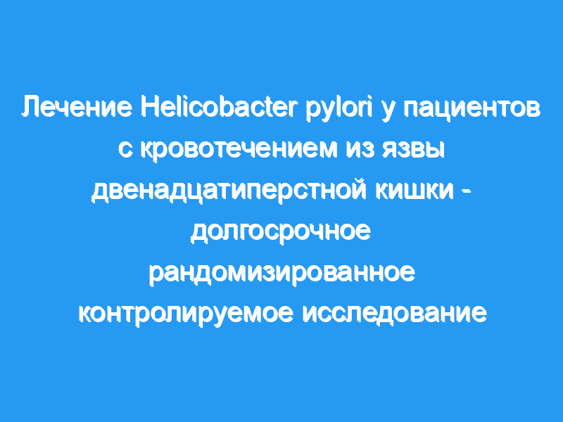 Эрадикация Helicobacter pylori (H. pylori) у пациентов с неосложненной язвой двенадцатиперстной кишки предотвращает длительный рецидив язв. Мы стремились изучить, предотвращает ли лечение H. pylori длительный рецидив кровотечения из язвенной болезни двенадцатиперстной кишки.