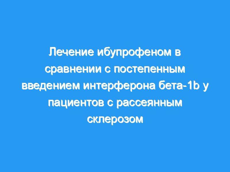 Гриппоподобные симптомы и реакции в месте инъекции являются побочными эффектами лечения интерфероном бета-1b у пациентов с рассеянным склерозом. Мы сравнили постепенное повышение дозы, лечение ибупрофеном или их комбинацию в открытом исследовании.
