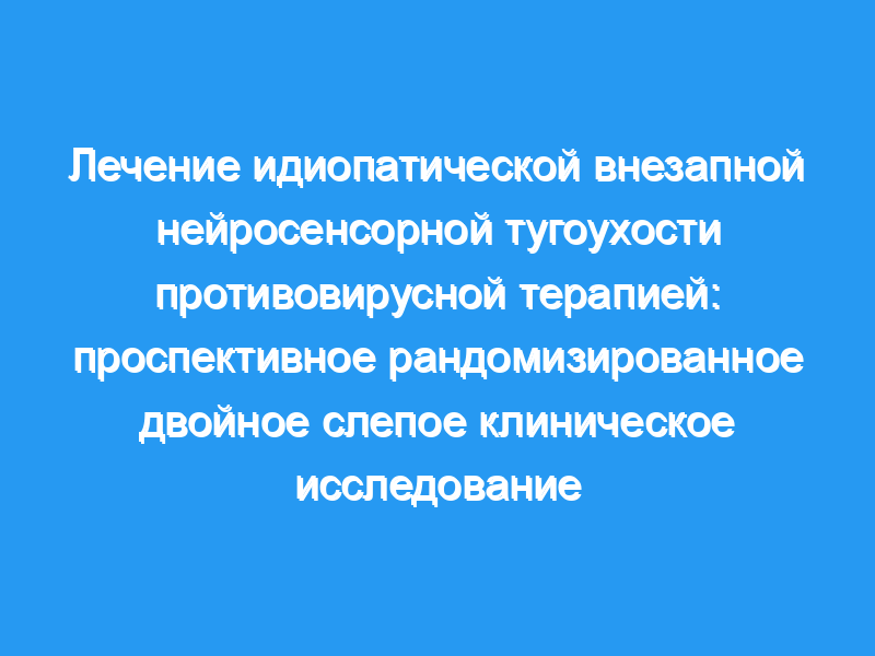 Кортикостероиды оказывают ограниченное благотворное влияние на восстановление слуха при ISSHL. В этом исследовании мы оценили терапевтическую ценность противогерпетического препарата ацикловир (Зовиракс) для восстановления слуха у 91 пациента с ISSHL, которые получали преднизолон в проспективном, рандомизированном, двойном слепом, плацебо-контролируемом, многоцентровом исследовании.
