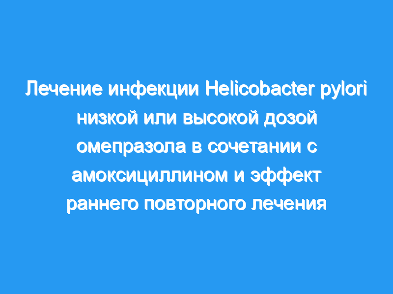 Показатели излечения инфекции H. pylori при использовании двойной терапии омепразолом и амоксициллином значительно различаются, и эффективность повторного лечения по этой схеме в случае первоначальной неудачи является спорной. Поэтому мы провели крупное проспективное двойное слепое рандомизированное исследование, изучая эффективность низких по сравнению высокие дозы омепразола при двойной терапии и раннем повторном лечении по тем же схемам.
