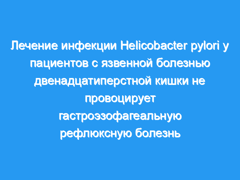 Наши данные показывают, что успешная эрадикация инфекции H. pylori не увеличивает частоту ГЭРБ у пациентов с язвенной болезнью двенадцатиперстной кишки.