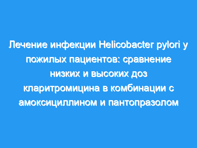 У пожилых пациентов 1-недельная тройная терапия ингибитором протонной помпы, амоксициллином и кларитромицином является высокоэффективным и хорошо переносимым анти-H. лечение пилори. С помощью этой комбинации кларитромицин в более низкой дозе 250 мг в сутки достиг превосходных показателей излечения и минимизировал побочные эффекты и затраты.