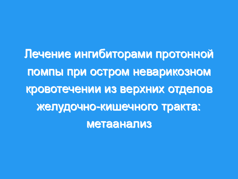 Целью данного обзора является оценка лечебных эффектов терапии ингибиторами протонной помпы (ИППП) при остром неварикозном кровотечении при УГИ.