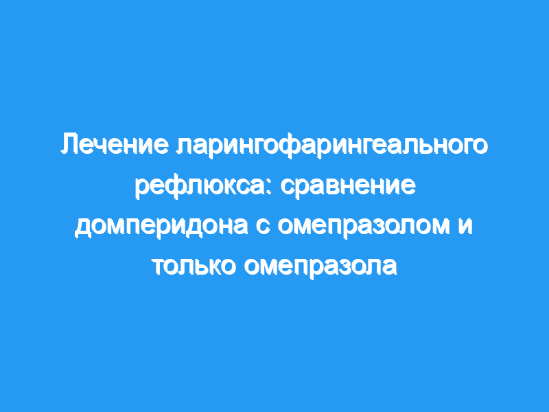 Оценить эффективность домперидона в комбинации с омепразолом при лечении ларингофарингеального рефлюкса (ЛПР) по сравнению с приемом только омепразола. Материал и метод: В проспективное рандомизированное исследование были включены семьдесят пациентов с индексом симптомов рефлюкса (RSI) 13 и более. Они получали либо домперидон по 10 мг три раза в день плюс омепразол по 20 мг два раза в день, либо только омепразол в течение трех месяцев. RSI оценивали в начале и после трех месяцев лечения.