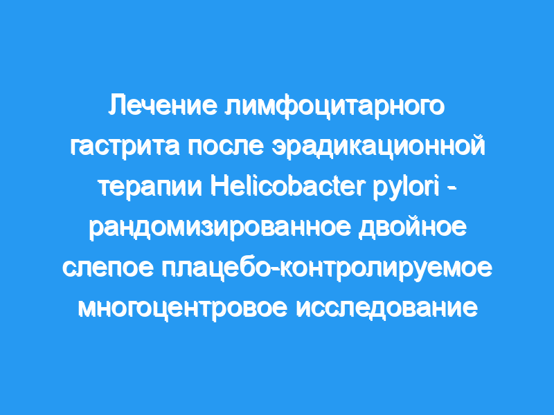 Оценить долгосрочный эффект эрадикационной терапии H. pylori при лимфоцитарном гастрите в двойном слепом плацебо-контролируемом многоцентровом исследовании.