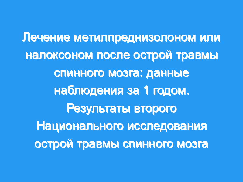 Данные 1-летнего наблюдения многоцентрового рандомизированного контролируемого исследования метилпреднизолона (30 мг/кг болюсно и 5,4 мг/кг/ч в течение 23 часов) или налоксона (5,4 мг/кг болюсно и 4,0 мг/кг/ч в течение 23 часов) для лечения острого спинномозгового сообщается о травмах и сравнивается с результатом плацебо.