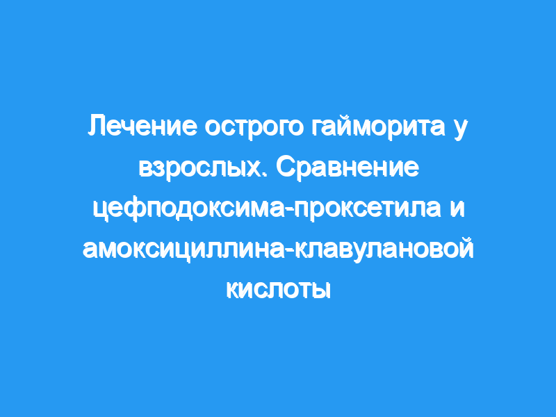 Целью было продемонстрировать эквивалентность клинической эффективности и безопасности цефподоксима-проксетила (200 мг бид в течение 5 дней) и амоксициллина-клавулановой кислоты (1 г/125 мг бид в течение 8 дней) у взрослых с острым верхнечелюстным синуситом. Метод: В этом проспективном, многоцентровом, централизованно рандомизированном, открытом исследовании 73 врача общей практики и 11 специалистов по ушам, носу и горлу включили 512 пациентов с односторонним острым верхнечелюстным синуситом.