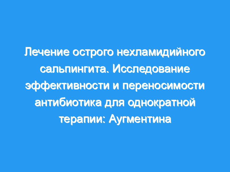 Эти результаты демонстрируют что Аугментин так же эффективен, как и комбинированная терапия при лечении острого сальпингита, а дополнительным преимуществом является простота его применения и меньшая стоимость.