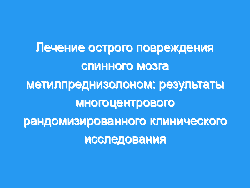 Метилпреднизолон (МП) был эффективен в уменьшении части постоянного паралича после острого повреждения спинного мозга в изученных дозах, но только когда лечение началось в течение 8 ч после травмы.