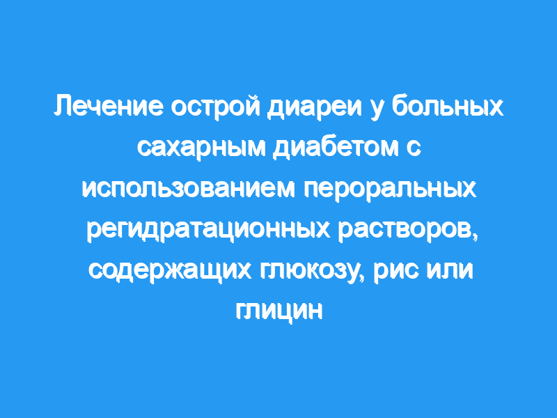 Растворы для пероральной регидратации, содержащие глюкозу, рисовый порошок или глицин, можно безопасно вводить больным сахарным диабетом с острой диареей и некоторым обезвоживанием.