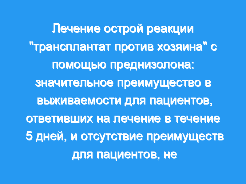 В заключение, 5-дневный прием преднизолона в качестве терапии первой линии острой РТПХ выявляет пациентов с различным риском развития ТРМ, а терапия второй линии комбинацией 6MPred + ATG не улучшает исход лечения по сравнению с применением только 6MPred.
