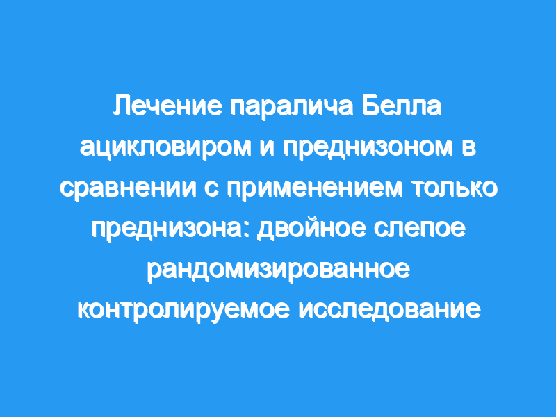В двойном слепом исследовании мы сравнили конечный результат 99 пациентов с параличом Белла, получавших либо ацикловир-преднизолон (53 пациента), либо плацебо-преднизолон (46 пациентов). Для пациентов, получавших ацикловир, доза составляла 2000 мг (400 мг 5 раз в день) в течение 10 дней.