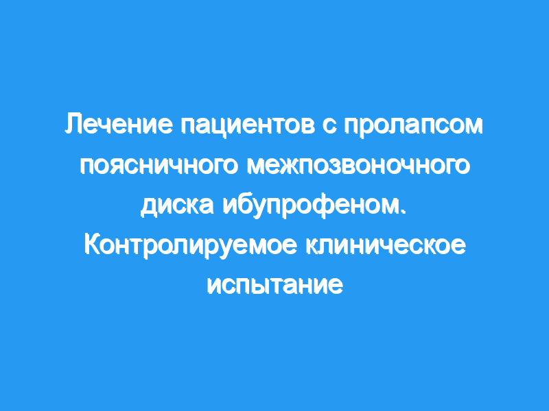 Таким образом, это исследование не продемонстрировало дополнительного обезболивающего эффекта ибупрофена, вводимого в качестве дополнения к консервативному лечению, применяемому в других случаях. при выпадении поясничного диска.