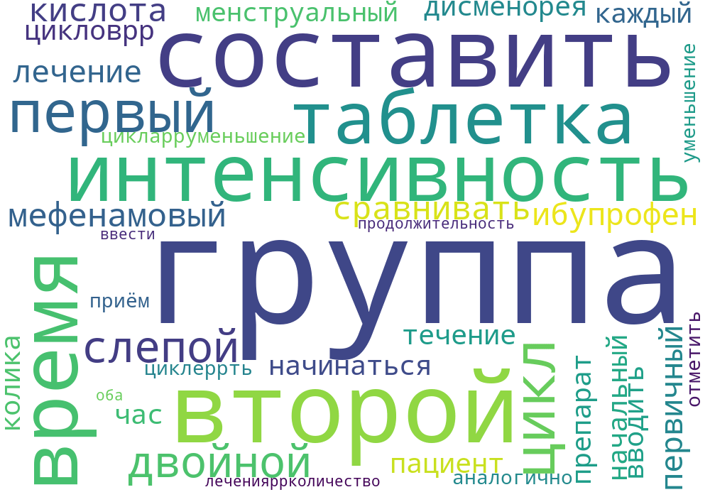 Уменьшение интенсивности боли было отмечено после второго приема таблетки в группе А на 8,6 + 1,8 при 6,0 + 2,4 в первом цикле и 8,5 +/- 1,8 в 5.9 +/- 2.6 во втором цикле.