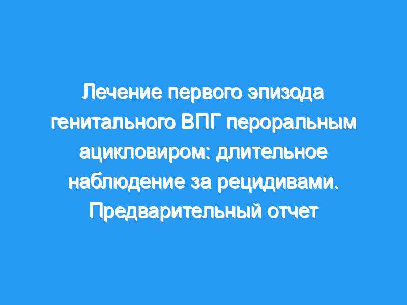 Чтобы оценить долгосрочные модели рецидивов, мы проспективно изучили субъектов, включенных в рандомизированное двойное слепое исследование орального ACV для первого эпизода генитального ВПГ. Шестьдесят три из шестидесяти восьми пациентов наблюдались ежемесячно на предмет рецидивов в среднем в течение 36 месяцев, при этом 90% пациентов завершили двухлетний период.