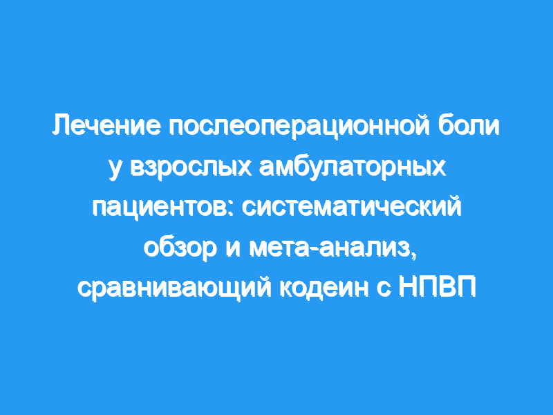 Анальгетики, содержащие кодеин, обычно назначают при послеоперационной боли, но неясно, как они сравниваются с неопиоидными альтернативами. Мы стремились сравнить эффективность кодеина и нестероидных противовоспалительных препаратов (НПВП) у взрослых, перенесших амбулаторную операцию.