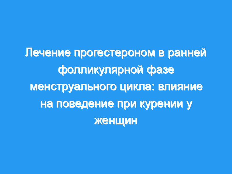 Эти предварительные результаты предполагают, что ранняя фолликулярная фаза менструального цикла может быть полезным интервалом для изучения влияния экзогенного прогестерона на курильщиц.