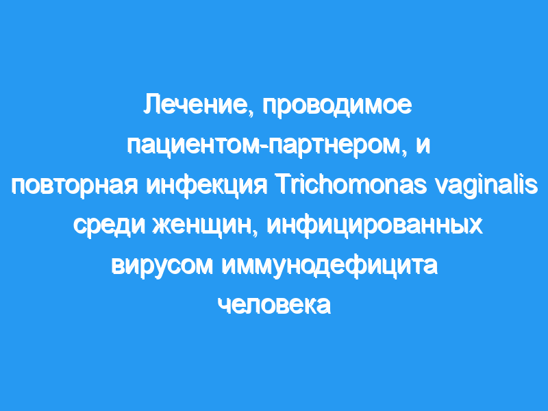 Повторные инфекции Trichomonas vaginalis (TV) среди женщин, инфицированных вирусом иммунодефицита человека (ВИЧ), являются распространенным явлением и могут увеличить риск передачи ВИЧ. Было показано, что лечение партнера, доставляемое пациентом (PDPT), уменьшает повторные инфекции других заболеваний, передающихся половым путем. Целью данного исследования была оценка приверженности к PDPT и возможных причин повторного заражения ВИЧ-инфицированными женщинами.