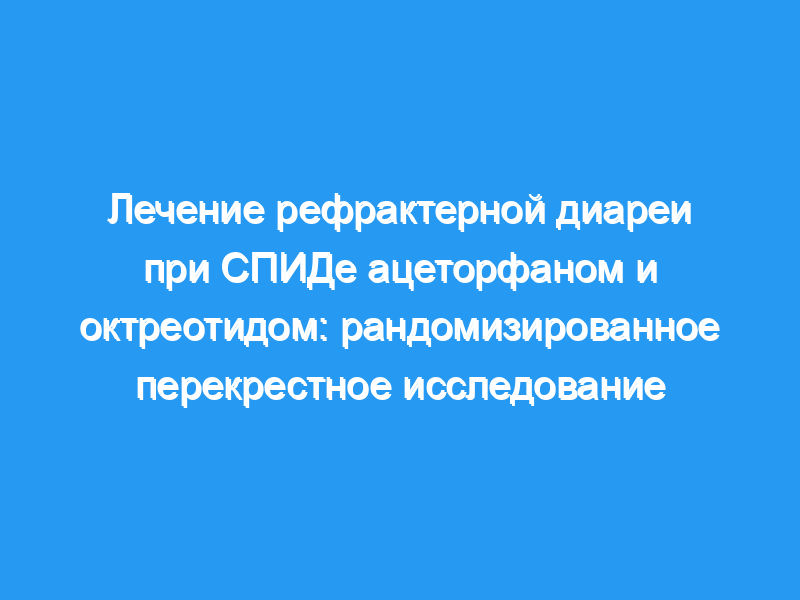 Стационарные медицинские отделения трех больниц. Пациенты: Тринадцать взрослых стационарных пациентов со СПИДом и рефрактерной диареей, которая продолжалась в течение 35 +/- 8 недель, несмотря на использование традиционных противодиарейных средств, и характеризовалась 7.0 +/- 1.2 стул/день, взвешивание 1033 +/- 174 г/сут с выходом липидов в 18.8 +/- 3.5 г/день. Вмешательства: Ацеторфан (100-300 мг три раза в день) и октреотид (50-150 мкг три раза в день) вводили в случайном порядке в течение двух 1-недельных периодов. Основные показатели результата: Реакция была определена как снижение по крайней мере на одну треть как суточного количества стула, так и веса.