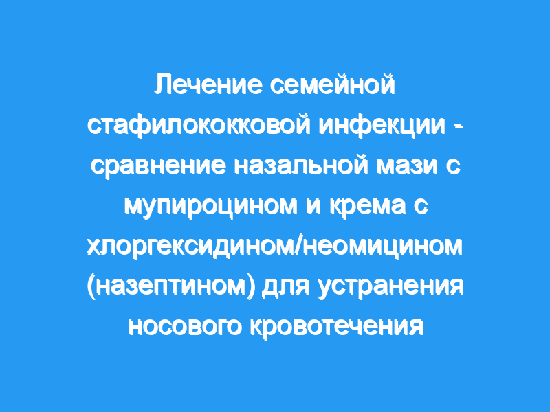 Двадцать шесть семей с рецидивирующими стафилококковыми инфекциями были обработаны либо мазью для носа с мупироцином (группа М), либо кремом с хлоргексидином неомицином (назептином) (группа N) для передних ноздрей, каждый в сочетании с хлоргексидиновым мылом для мытья и порошком хлоргексидина, нанесенным на другое возможное место носительства.