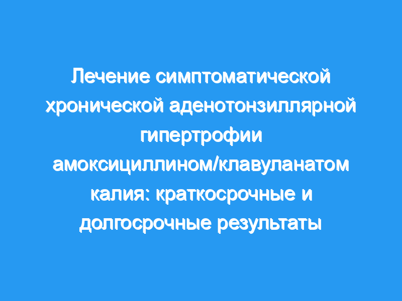 30-дневный курс AMOX/CLAV значительно уменьшает потребность в хирургическом вмешательстве у детей с обструктивной аденотонзиллярной гипертрофией при 1-месячном наблюдении. Это относительное снижение сохраняется через 3 и 24 месяца после лечения, хотя абсолютный процент пациентов, нуждающихся в хирургическом вмешательстве, увеличился в обеих группах по мере увеличения времени после лечения. Уменьшение симптомов у пациентов, получавших АМОКС/КЛАВ, является скромным, но значительным даже при длительном наблюдении. Точная роль этого метода лечения CATH еще предстоит определить, однако наши результаты показывают, что 30-дневный курс AMOX /CLAV может быть использован в ситуациях, когда желательно временное облегчение симптомов или хирургическое вмешательство сопряжено с неприемлемым риском.