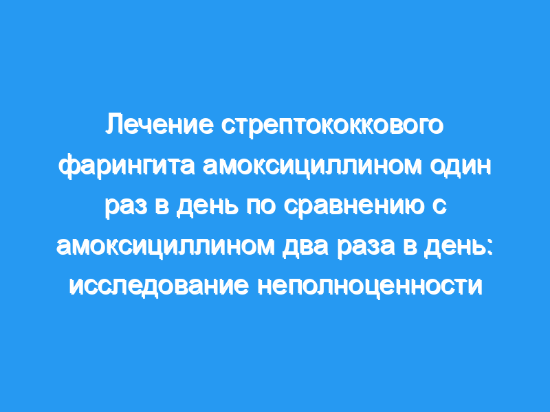 Мы пришли к выводу, что амоксициллин, вводимый один раз в день, не уступает амоксициллину, вводимому два раза в день. Желудочно-кишечные и другие осложнения не возникали значительно чаще в группе, получавшей лечение один раз в день. Согласно данным этого крупного контролируемого слепого исследования, прием амоксициллина один раз в день, по-видимому, является подходящей схемой лечения ГАЗОВОГО фарингита.