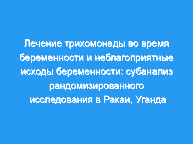 У детей 94 женщин с трихомонадой, получавших лечение, была повышена низкая масса тела при рождении (относительный риск 2,49, 95% ДИ 1,12-5,50), частота преждевременных родов (относительный риск 1,28, 95% ДИ 0,81-2,02) и 2-летняя смертность. (относительный риск 1,58, 95% ДИ 0,99-2,52) по сравнению с детьми 112 женщин с трихомонадой, которые не получали лечения.