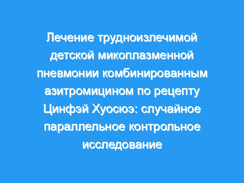 Изучить влияние комбинированного азитромицина по рецепту Цинфэй Хуосюэ (QHR) при лечении трудноизлечимой детской микоплазменной пневмонии.