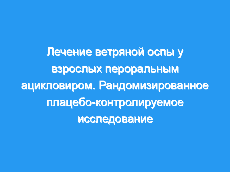Оценить эффективность перорального ацикловира при лечении взрослых с ветряной оспой и описать естественный анамнез ветряной оспы у взрослых. Дизайн: Двойное слепое плацебо-контролируемое рандомизированное исследование.