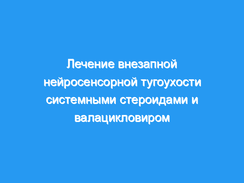 Исследование проводилось из центра третичной медицинской помощи и клинического исследовательского института, пациенты были зарегистрированы отоларингологами в академических и частных амбулаторных условиях. Пациенты: Критерии включения включали 1) потерю не менее 30 дБ на 3 смежных частотах в течение 3 дней у пациентов с предшествующей аудиометрией, 2) выраженную потерю слуха у пациентов с предшествующим субъективно нормальным слухом и без предшествующей аудиометрии, с контралатеральным слухом, взятым в качестве исходного уровня, и 3) пациентов, осмотренных в течение 10 дней от начала потери слуха. Оценка перед лечением включала аудиометрию и общий анализ клеток крови, полный биохимический анализ крови и тест на поглощение флуоресцентных трепонемных антител. Была рекомендована слуховая реакция, вызванная стволом мозга, или магнитно-резонансная томография. Вмешательство: Пациенты получали преднизолон (80 мг/сут в течение 4 дней, затем уменьшали дозу в течение 8 дней) с плацебо или преднизолон с валацикловиром (по 1 г 3 раза в день в течение 10 дней). Основной показатель результата: 1) Аудиометрическая оценка на презентации, 2-я неделя и 6-я неделя, 2) Опросный лист для проверки слуха два раза в неделю в течение 6 недель и 3) Опросный лист острой краткой формы-12 на презентации и 2-й неделе.