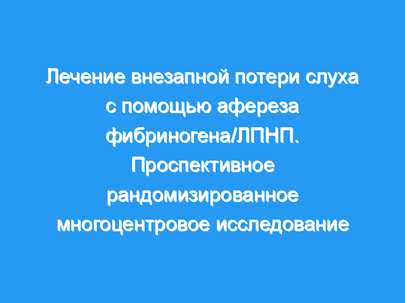 Чтобы проверить гипотезу о том, что аферез фибриногена/ЛПНП столь же эффективен или превосходит традиционную терапию с использованием плазморасширителей и преднизолона при лечении SSHL. Дизайн: контролируемое, проспективное, рандомизированное, многоцентровое исследование. Условия и пациенты: 201 пациент был набран с 01/2000 по 6/2001 в Университетских клиниках Мюнхена, Берлина, Гамбурга и Бохума. Критерием включения была внезапная нейросенсорная тугоухость неизвестного происхождения в течение 6 дней от начала заболевания. Вмешательства: Однократная инфузия фибриногена/ЛПНП-афереза преднизолона (250 мг, уменьшенная на 25 мг ежедневно), гидроксиэтилкрахмала (500 мл, 6%) и пентоксифилина (400 мг/сут). Основные результаты: Улучшение порогов чистого тонуса через 48 ч после начала терапии.