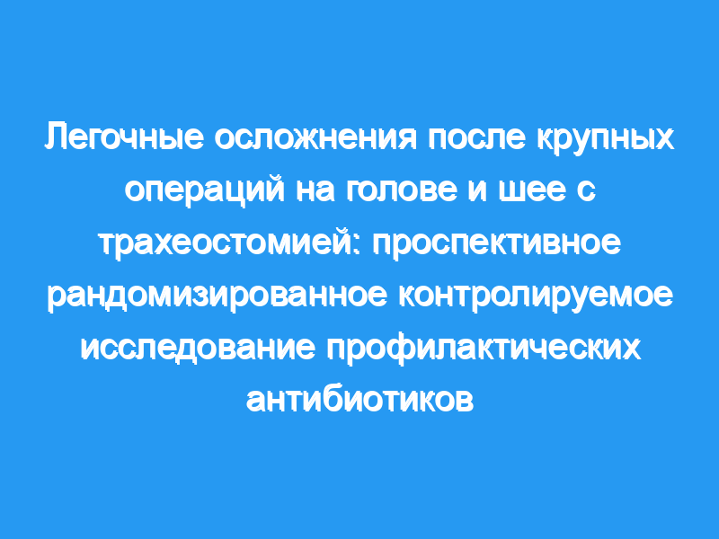 Проверить гипотезу о том, что длительное послеоперационное лечение антибиотиками снизит частоту легочных осложнений у пациентов, перенесших серьезные операции на голове и шее с трахеостомией. Дизайн: Было проведено проспективное рандомизированное контролируемое исследование для определения эффективности длительного курса (5 дней) внутривенного введения амоксициллина-клавулановой кислоты в снижении частоты ателектазов и легочных инфекций в послеоперационном периоде. Также были оценены другие возможные факторы риска, которые могут предрасполагать к легочным осложнениям.