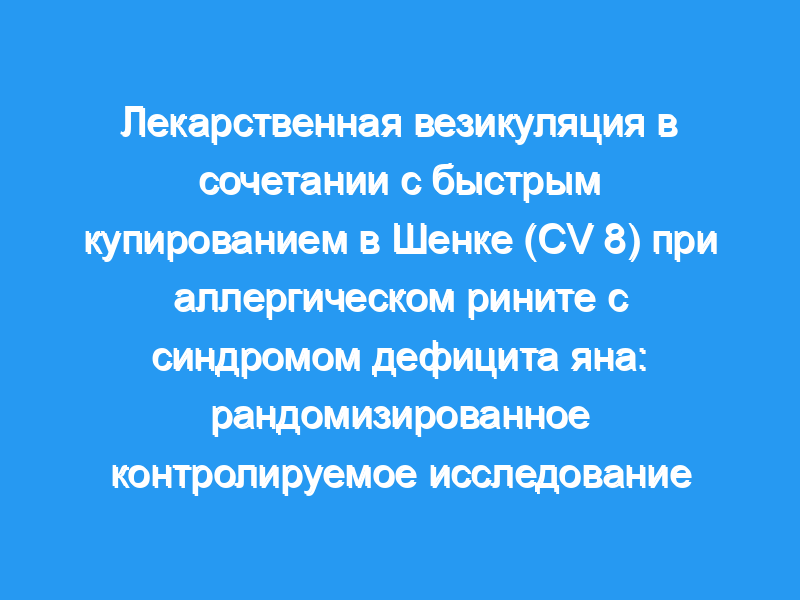 Лекарственная везикуляция в сочетании с быстрым купированием в Shenque (CV 8) оказывают лучший эффект при аллергическом рините с синдромом дефицита яна, чем пероральный прием лоратадина и назального спрея будесонида.