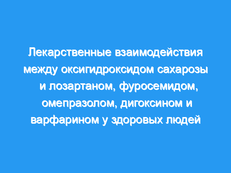В пяти одноцентровых открытых рандомизированных перекрестных исследованиях I фазы с тремя периодами на здоровых добровольцах изучалось влияние однократной дозы оксигидроксида сахарозы 1 г (в пересчете на содержание железа) на фармакокинетику лозартана 100 мг, фуросемида 40 мг, омепразола 40 мг, дигоксин 0,5 мг и варфарин 10 мг. Были определены фармакокинетические параметры [включая площадь под кривой концентрация-время в плазме (AUC) от времени 0, экстраполированного до бесконечного времени (AUC0-∞) и от 0 до 24 ч (AUC0-24)] для этих препаратов: отдельно в присутствии пищи, с оксигидроксидом сахарозы в присутствии пищи., через 2 ч после приема пищи и введения оксигидроксида сахарозы.