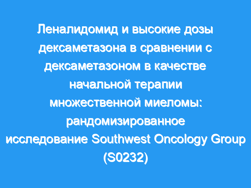 Юго-Западная онкологическая группа провела рандомизированное исследование, в котором сравнивались леналидомид (LEN) плюс дексаметазон (DEX, n = 97) и плацебо (PLC) плюс DEX (n = 95) при впервые диагностированной миеломе.