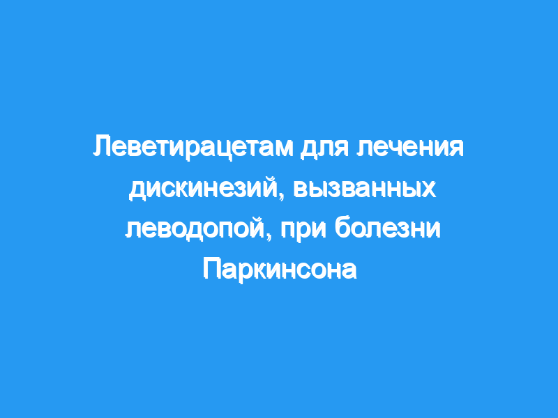 Эффективность и безопасность леветирацетама (ЛЕВ), назначаемого для лечения дискинезий, вызванных леводопой (LID), при болезни Паркинсона (БП), были изучены с использованием многоцентрового двойного слепого плацебо-контролируемого исследования в параллельных группах, crossover tria.