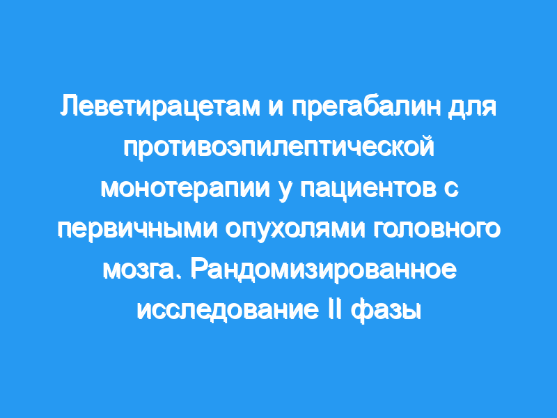 В этом прагматичном, рандомизированном, слепом исследовании II фазы (NCT00629889) пациенты с первичными опухолями головного мозга и эпилепсией были переведены на монотерапию ЛЕВ или ПГБ. Эффективность и переносимость оценивались с помощью структурированных вопросников. Первичной комбинированной конечной точкой была необходимость прекращения приема исследуемого препарата, дополнительного противоэпилептического лечения или возникновения по крайней мере 2 приступов с нарушением сознания в течение 1 года наблюдения.