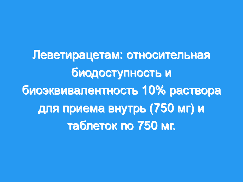 10% раствор леветирацетама для приема внутрь является биоэквивалентной, хорошо переносимой альтернативой таблетированной форме у пациентов, испытывающих трудности с глотанием.