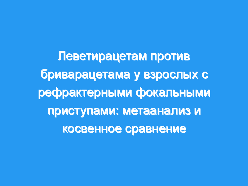 Целью исследования было сравнить эффективность и переносимость леветирацетама (LEV) и бриварацетама (BRV) у взрослых с рефрактерными фокальными приступами. Метод: Мы систематически запрашивали Medline, Embase и Кокрановскую библиотеку. Мы искали дополнительные исследования в ссылках на все выявленные публикации и ClinicalTrials.gov . Днем отключения было 6 ноября 2015 года. Были включены рандомизированные, двойные слепые, плацебо-контролируемые исследования. Было проведено косвенное сравнение для 50% респондентов, частоты без судорог и побочных эффектов.