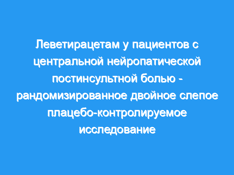 Предпосылки и цель: Центральная постинсультная боль (CPSP) — это тяжелое хроническое невропатическое болевое состояние, определяемое как спонтанная боль или аллодиния, соответствующая сосудистому поражению. Обычно он развивается через несколько недель после инсульта и может заметно ухудшить качество жизни. Лечение сложное и в основном неудовлетворительное. Мы предположили, что противоэпилептический препарат леветирацетам (ЛЕВ) улучшает CPSP по сравнению с плацебо. Целью данного исследования было изучение эффективности и переносимости ЛЕВ у пациентов с CPSP.