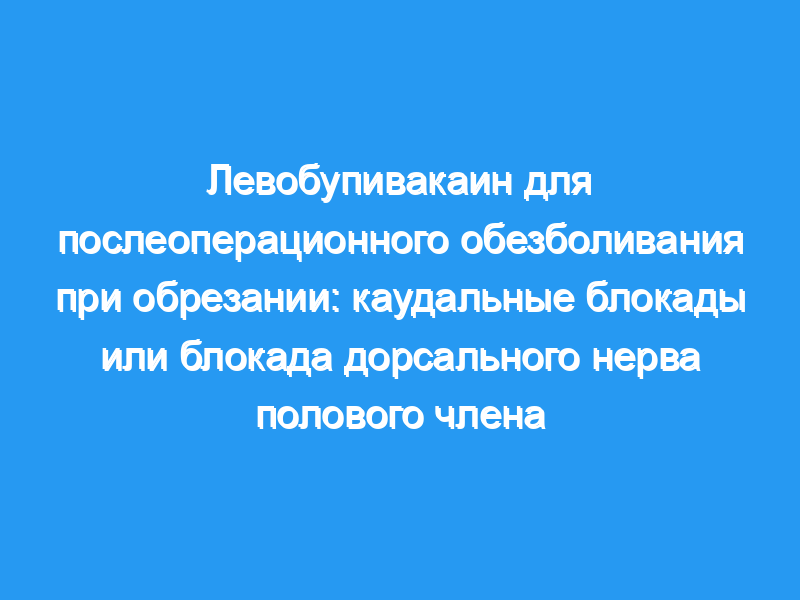 Каудальная блокада, выполняемая с использованием левобупивакаина для послеоперационного обезболивания при обрезании, более успешна, чем блокада полового члена, однако существует значительная задержка во времени до первой ходьбы и, как и следовало ожидать, существует повышенный риск двигательной блокады.
