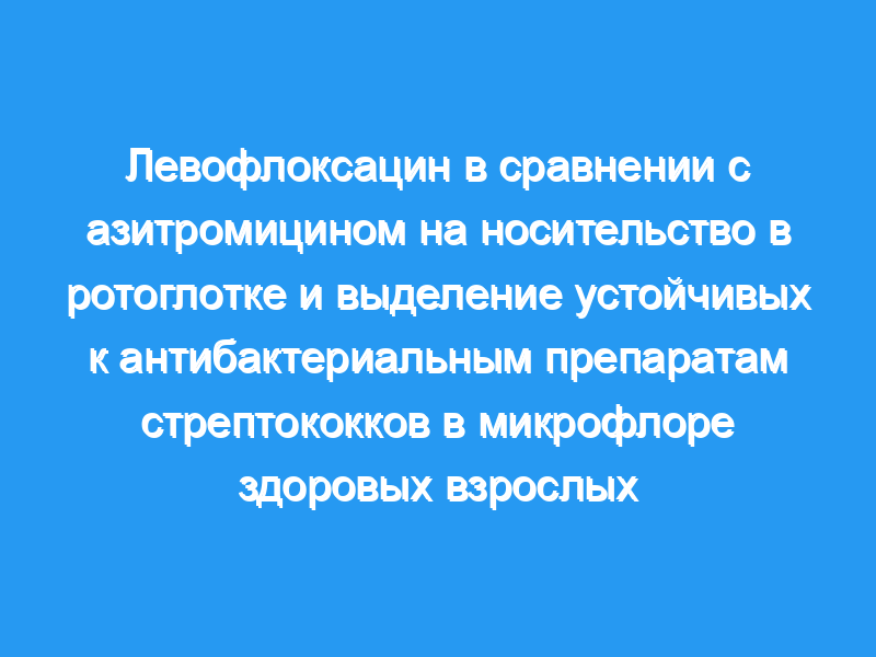 На момент начала исследования 117 стрептококков были выделены у 72 пациентов, рандомизированных на азитромицин, и 53 (45,3%) были устойчивы к азитромицину. Ни один из 121 стрептококков, выделенных у 71 пациента, рандомизированных для назначения левофлоксацина, не был колонизирован устойчивым к левофлоксацину микроорганизмом до введения препарата. В конце приема количество субъектов с устойчивыми стрептококками (S. mitis, S. salivarius, S. sanguis или альфа-стрептококками [spp.]) увеличилось у субъектов, подвергшихся воздействию азитромицина, а устойчивые изоляты сохранялись в течение 6 недель после введения препарата. Напротив, небольшое количество устойчивых к левофлоксацину стрептококков наблюдалось в конце приема препарата, но уменьшилось на 2-й неделе после приема препарата и продолжало снижаться в течение 6-недельного периода оценки (p <, 0,001 азитромицин против левофлоксацина для S. mitis, S. salivarius, S. sanguis и альфа-streptococcus spp. на 6-й неделе). Ограничения этого исследования включали тот факт, что, поскольку о предыдущем применении антибиотиков сообщалось самостоятельно, генетическое типирование не проводилось. Результаты этого исследования могут быть не полностью обобщены, поскольку субъекты в этом исследовании получали исследуемый препарат в условиях непосредственного наблюдения, что обеспечивало соблюдение требований.