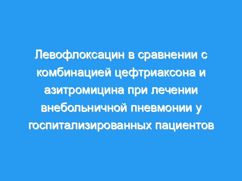 Мы пришли к выводу, что монотерапия пероральным левофлоксацином была столь же эффективной, как и лечение с комбинацией цефтриаксона и азитромицина у пациентов с ВП, которым потребовалась госпитализация.