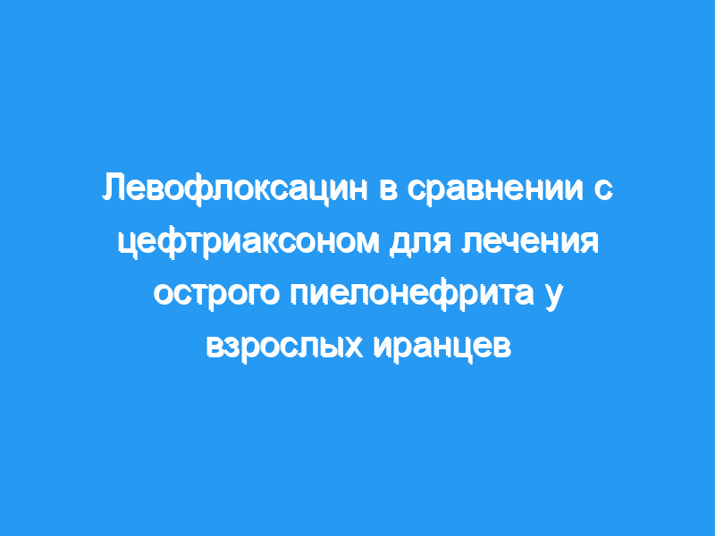 В этом рандомизированном открытом исследовании госпитализированных взрослых с острым пиелонефритом лечили цефтриаксоном (1 г внутривенно каждые 12 часов) или левофлоксацином (750 мг внутривенно ежедневно) в течение не менее 7 дней. Клинические и микробиологические характеристики сравнивались у пациентов, получавших цефтриаксон и левофлоксацин.
